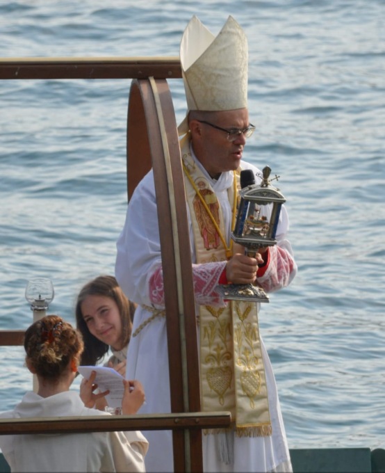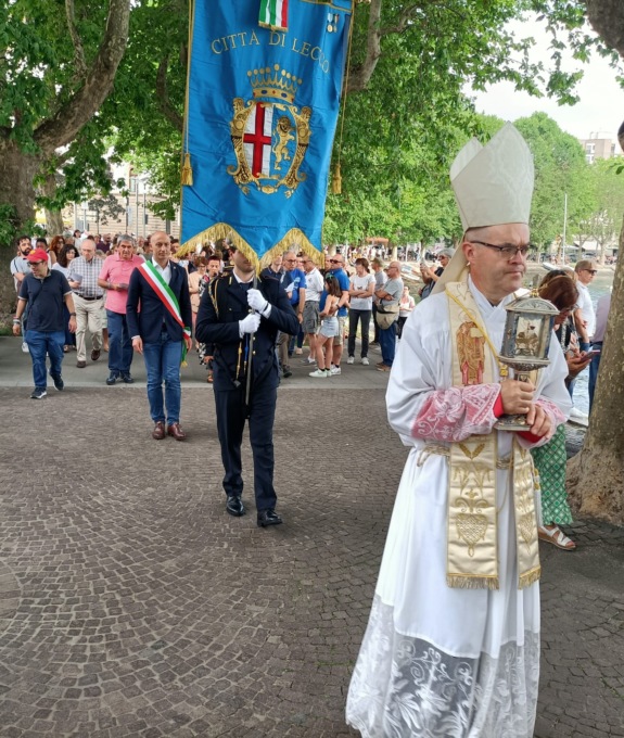 Nel tardo pomeriggio è stata impartita dal previsto di Lecco, monsignor Davide Milani, a bordo di una Lucia, la benedizione della città e del lago.