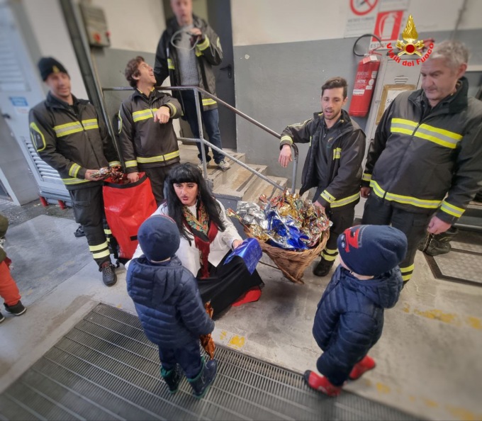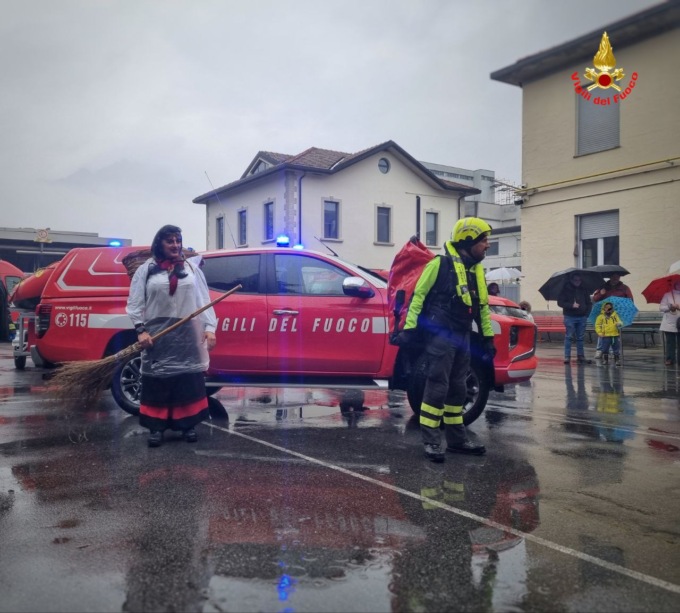 Non c’è maltempo che possa fermare la Befana dei Vigili del fuoco di Lecco. Anche oggi, lunedì 6 gennaio 2025, nonostante il meteo avverso, la simpatica vecchina ha fatto tappa nella caserma dei pompieri di piazza Bione e ha fatto il suo ingresso trionfale a bordo di un gommone da soccorso issato su un carrello trainato da un mezzo dei Vigili del Fuoco.