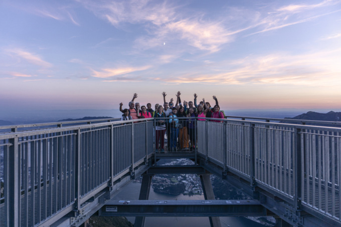 La presenza di una trentina di persone alla prima serata presso l’Eremo della Madonna della Neve a Pusiano aveva lasciato ben sperare ma il grande riscontro della seconda serata ha lasciato anche gli organizzatori piacevolmente stupiti. Nella serata di ieri martedì 10 settembre 2024, circa 50 persone persone si sono trovate ai Piani Resinelli all’ingresso del Parco del Valentino dove, con un breve trekking in compagnia, è stata raggiunta la passerella panoramica che offre un balcone unico sulla città di Lecco immersa tra lago e montagne prealpine. Un tramonto suggestivo e colorato ha reso l’esperienza ancor più emozionante.