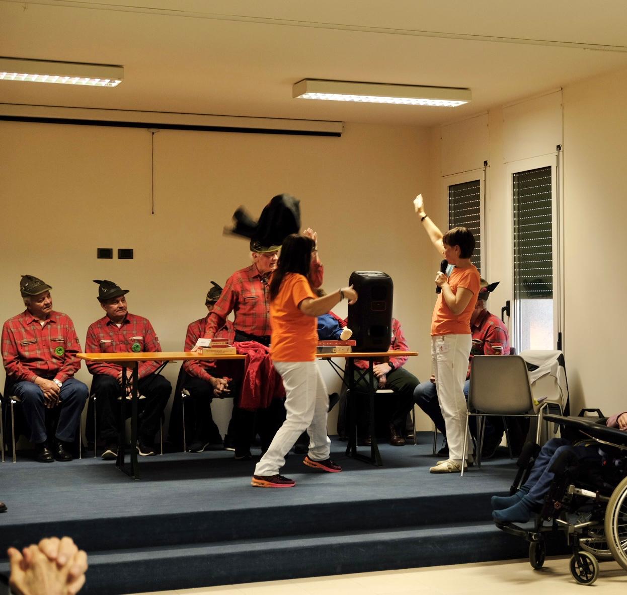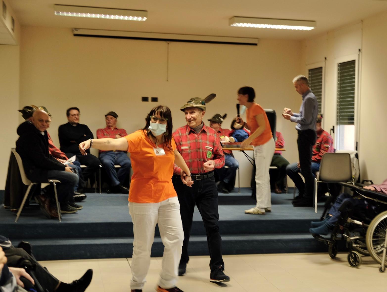 La musica dello stereo ha subito rallegrato i presenti, tanto che un alpino e una ospite, della veneranda età di 101 anni, si sono uniti sui passi di un bel Walzer tra gli applausi del pubblico.