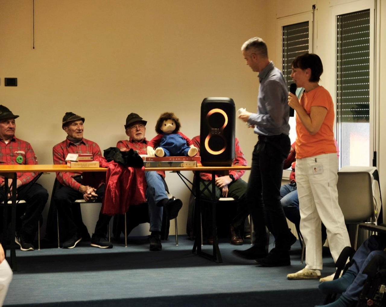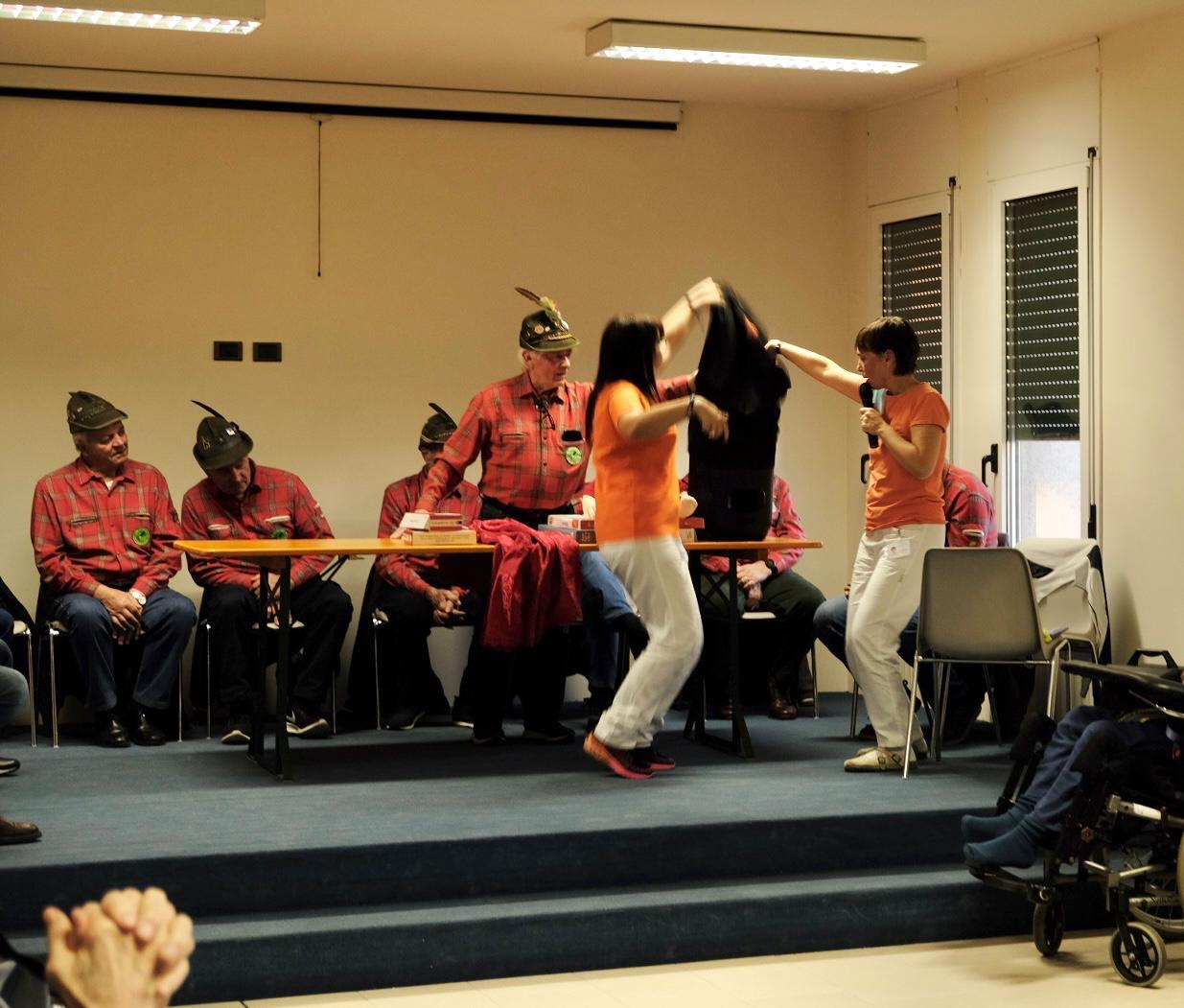 La musica dello stereo ha subito rallegrato i presenti, tanto che un alpino e una ospite, della veneranda età di 101 anni, si sono uniti sui passi di un bel Walzer tra gli applausi del pubblico.