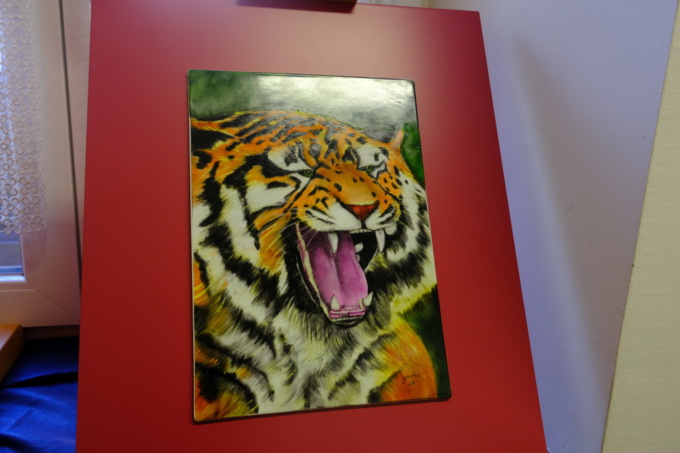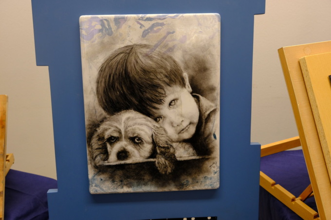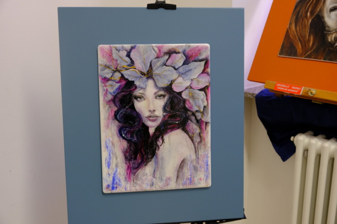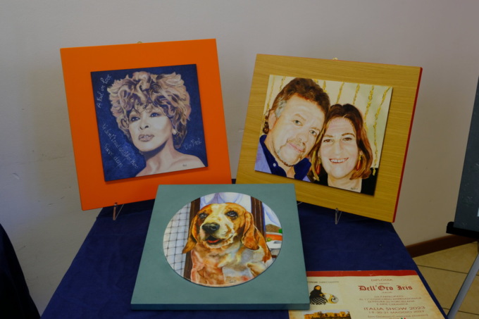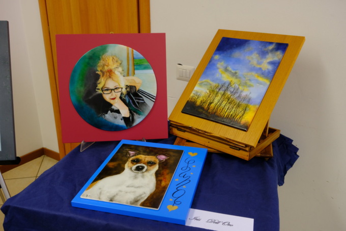 Le artiste hanno quindi illustrato la complessa tecnica della pittura su ceramica, che implica diverse passate e cotture per rendere la superficie lucida, inoltre i colori utilizzati sono pigmenti che vengono impastati con appositi oli e vanno cotti in un forno particolare ad una temperatura molto alta.